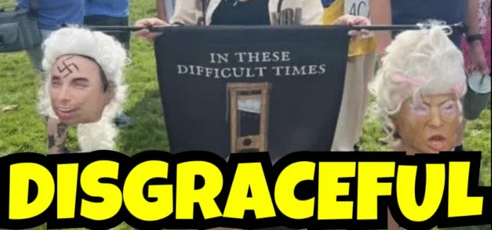 North Carolina Representative Julie von Haefen (D) is facing explosive backlash after posting a video from a Raleigh “No Kings” protest — including a shocking sign of a guillotine with a head resembling President Donald Trump. The scandal has set off a political firestorm.