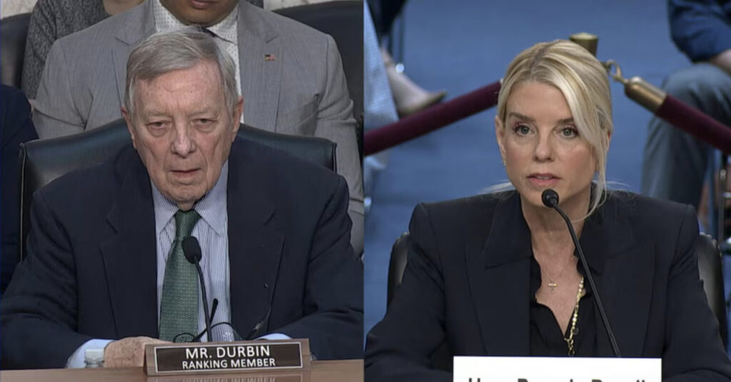 Bondi shot back: “Why did you fight to not disclose the flight logs, Senator Durbin?”